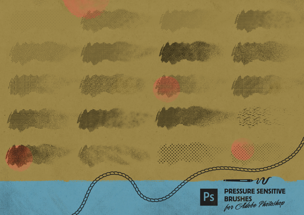 Более 40 кистей - универсальные бесшовные полутоновые кисти (Half tone) они дают невероятный уровень теневых тонов и делают иллюстрацию похожей на старинную технику печати.
