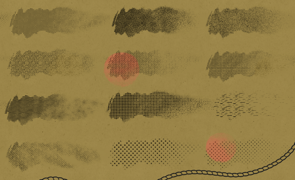 Universal seamless halftone brushes for Procreate give an incredible level of shadow tones and make the illustration look like old printing techniques. Create craft illustrations, level up your unique style! A set of brushes (80) from illustrator Oleg Gert